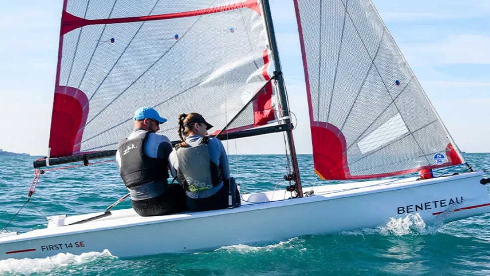 SOLICITA TU PRUEBA DE MAREl First 14 SE pone la vela deportiva al alcance de todos. Es un derivador rápido y excitante, no obstante accesible gracias a su estabilidad y a la calidad de sus equipos. El First 14 ha sido concebido para ser eficaz en todas las condiciones sin trapecio. El desarrollo de la clase monotipia en curso, le permitirá medirse en el agua e integrarse en la comunidad First. La libertad sobre el agua está reforzada por las ruedas movibles que permiten pararse en tierra sin volver al punto de salida. Las playas más secretas y las más salvajes son al alcance de su proa. En tierra, el First 14 SE es suficientemente ligero para ser transportado sobre el techo de un coche así que verdaderamente puede ir a navegar allí donde lo desee. Las cajas son planas y el casco está concebido para ser transportado al revés con el mástil desmontable y los otros equipos almacenados en el interior tan bien que el cofre de su vehículo se mantiene disponible. La Comunidad Internacional de Propietarios y el calendario de eventos permiten a los propietarios desafiarse a sí mismos en los desafíos de larga distancia. One Design por todo el continente en una gran compañía de navegantes solidarios y afines.