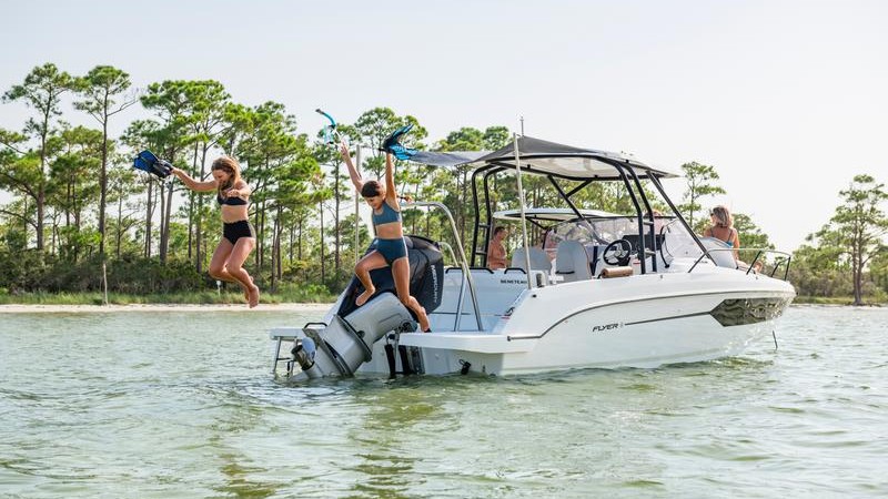 SOLICITA TU PRUEBA DE MARGran superficie de cubierta, altos francos bordos, plataforma lateral para ampliar la bañera y diseño deportivo, el Flyer 9 SPACEdeck es ideal para todas las actividades náuticas. En la proa, una banqueta adicional opcional, permitirá constituir un salón de proa muy confortable y convertible en gran solárium. Una estación de pesca está disponible en opción, así como guarda cañas en los francos bordos. El camarote reserva un lote de características de confort inesperadas en un casco open. El espacio amplio del interior, integra dos literas, así como un aseo con WC.