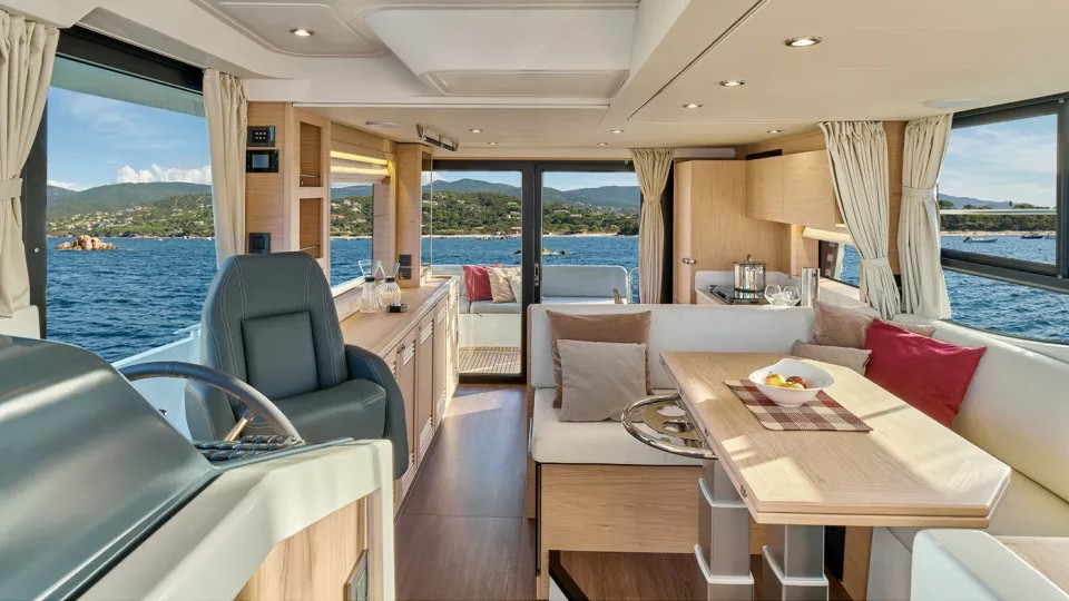 Concebido para explorar nuevos horizontes, el Swift Trawler 48 le seducirá por su personalidad, sus diseños y su espacio habitable optimizado. Situado en el centro de su gama, retoma algunos elementos decorativos del Grand Trawler 62, haciéndolo particularmente elegante.